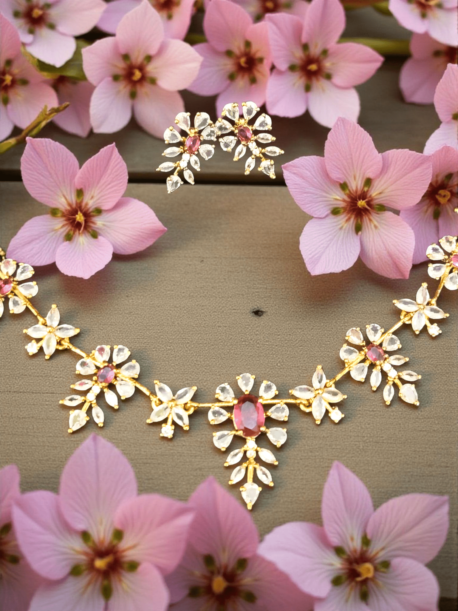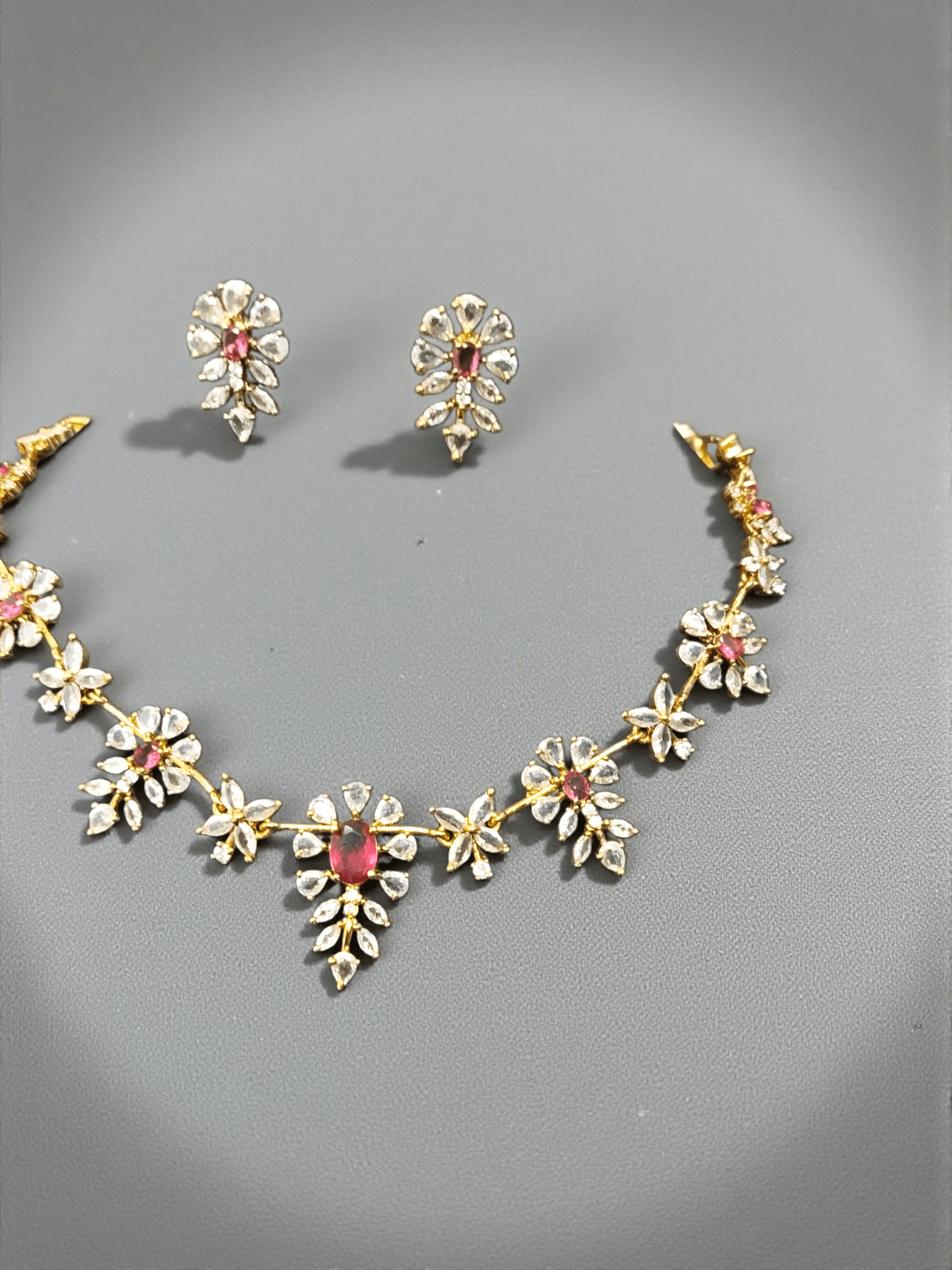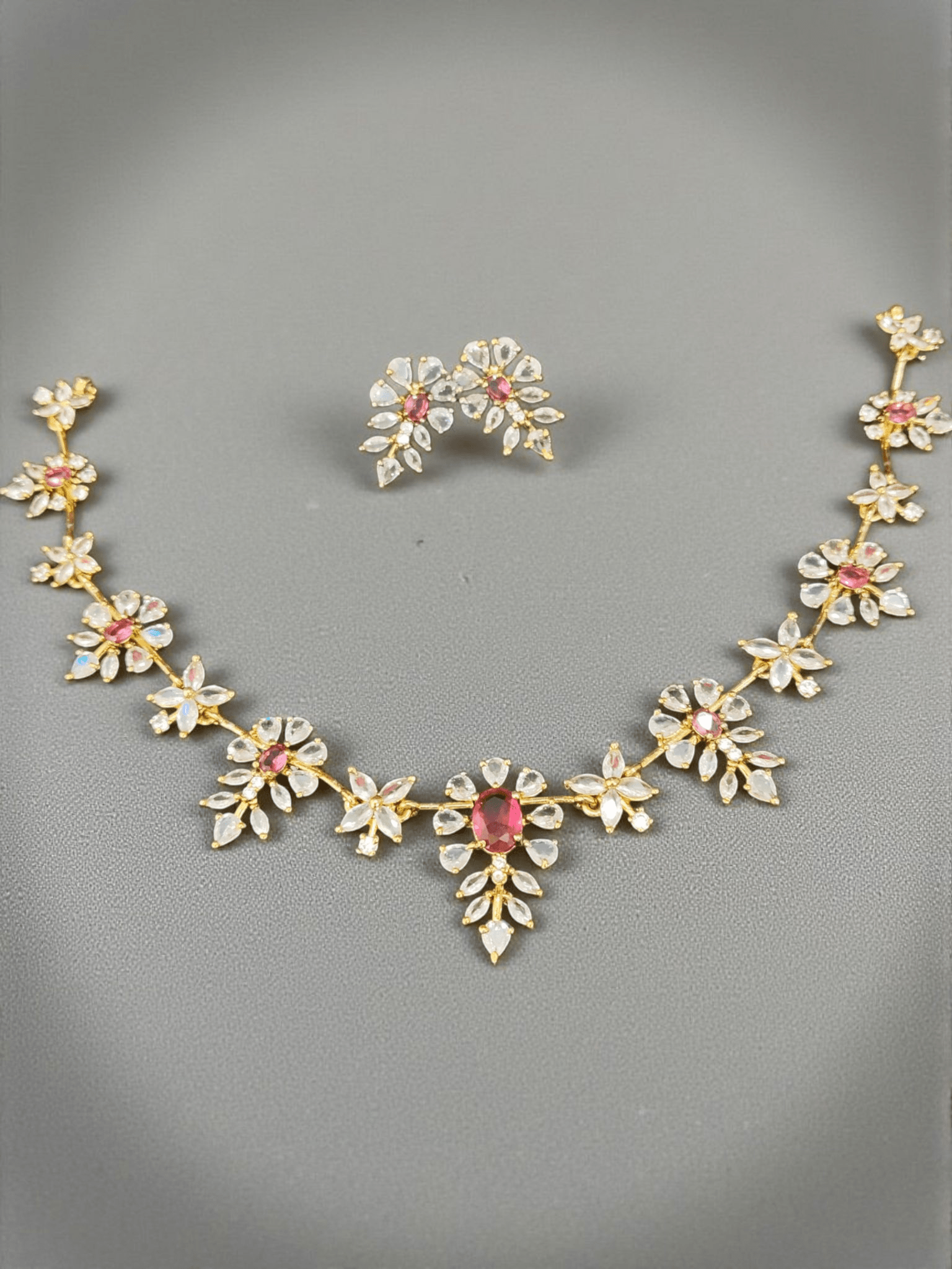 Dawning Flower Premium Quality Simple and Stylish Antique Gold Plated Necklace Set with AD Stone