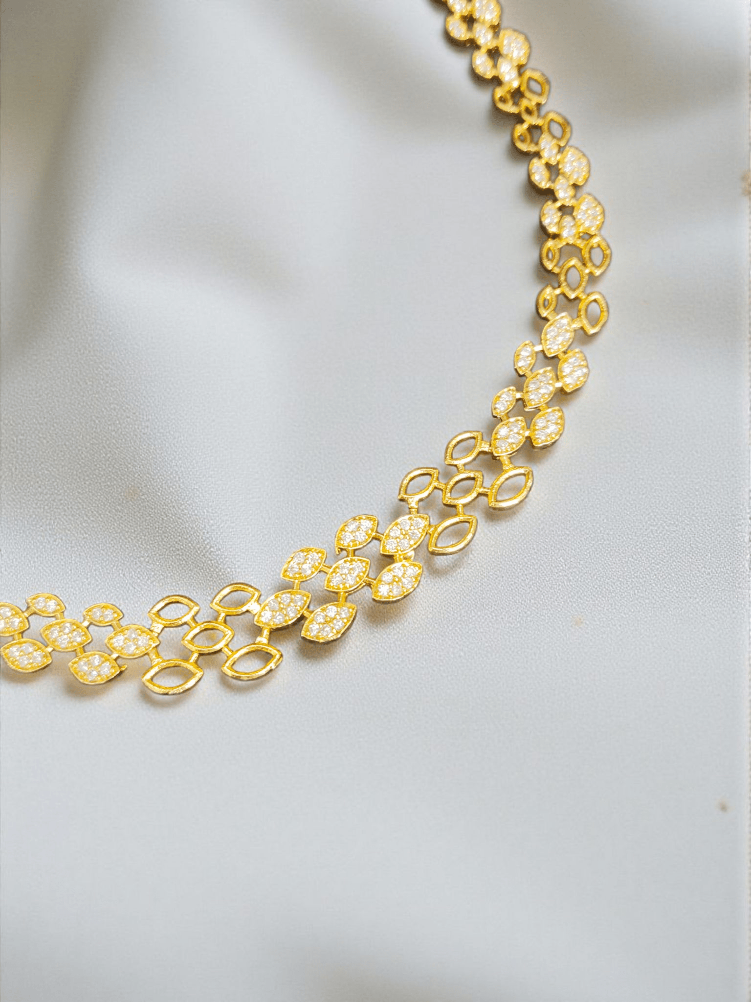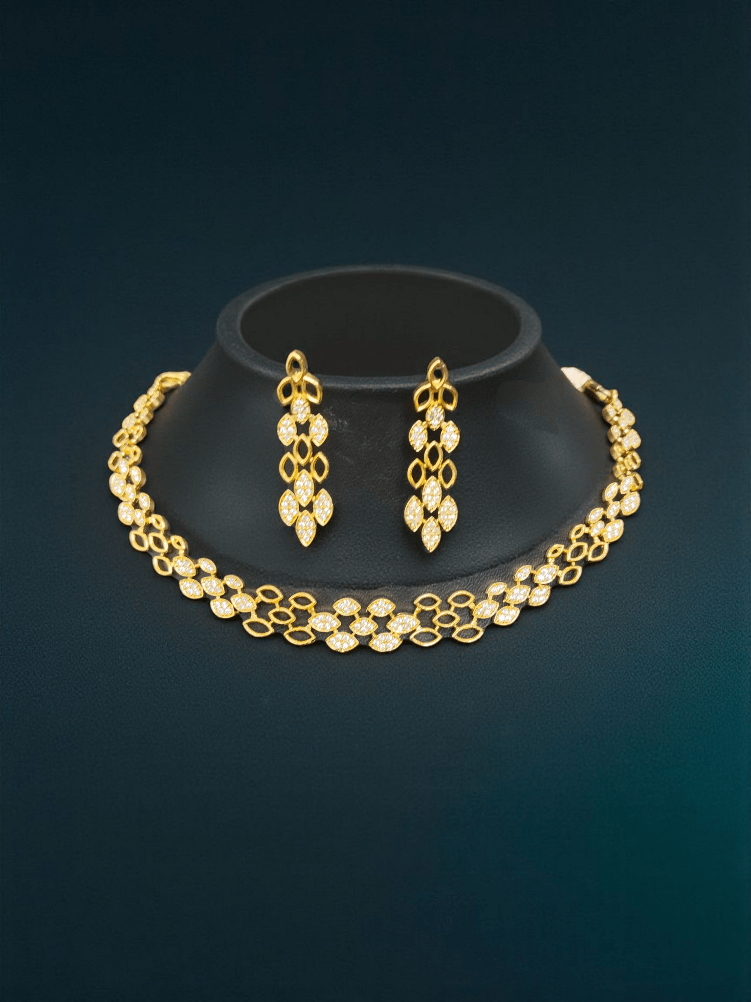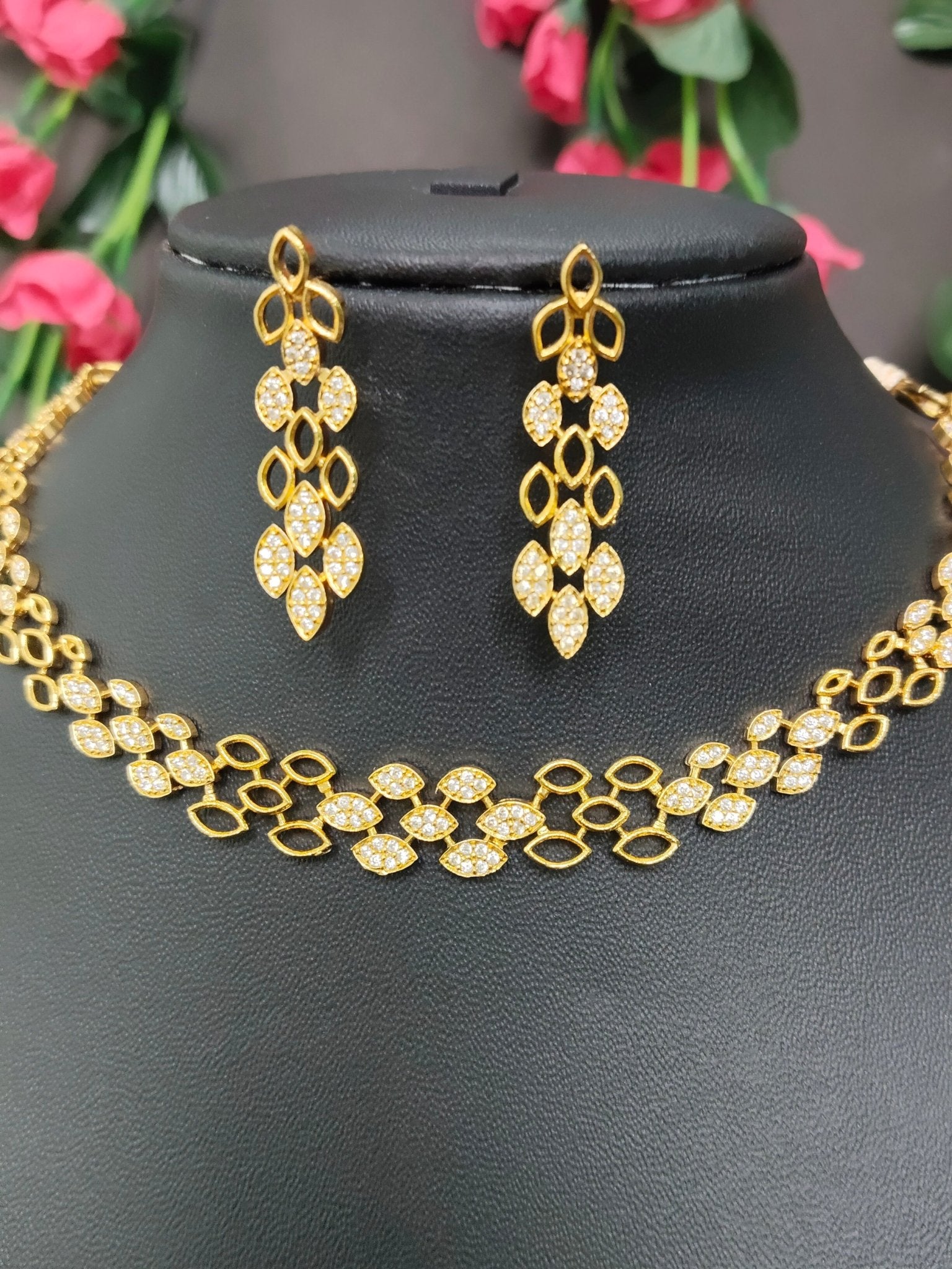 Golden Leaves Premium Quality Simple and Stylish 22k Gold Plated Necklace Set with AD Stone