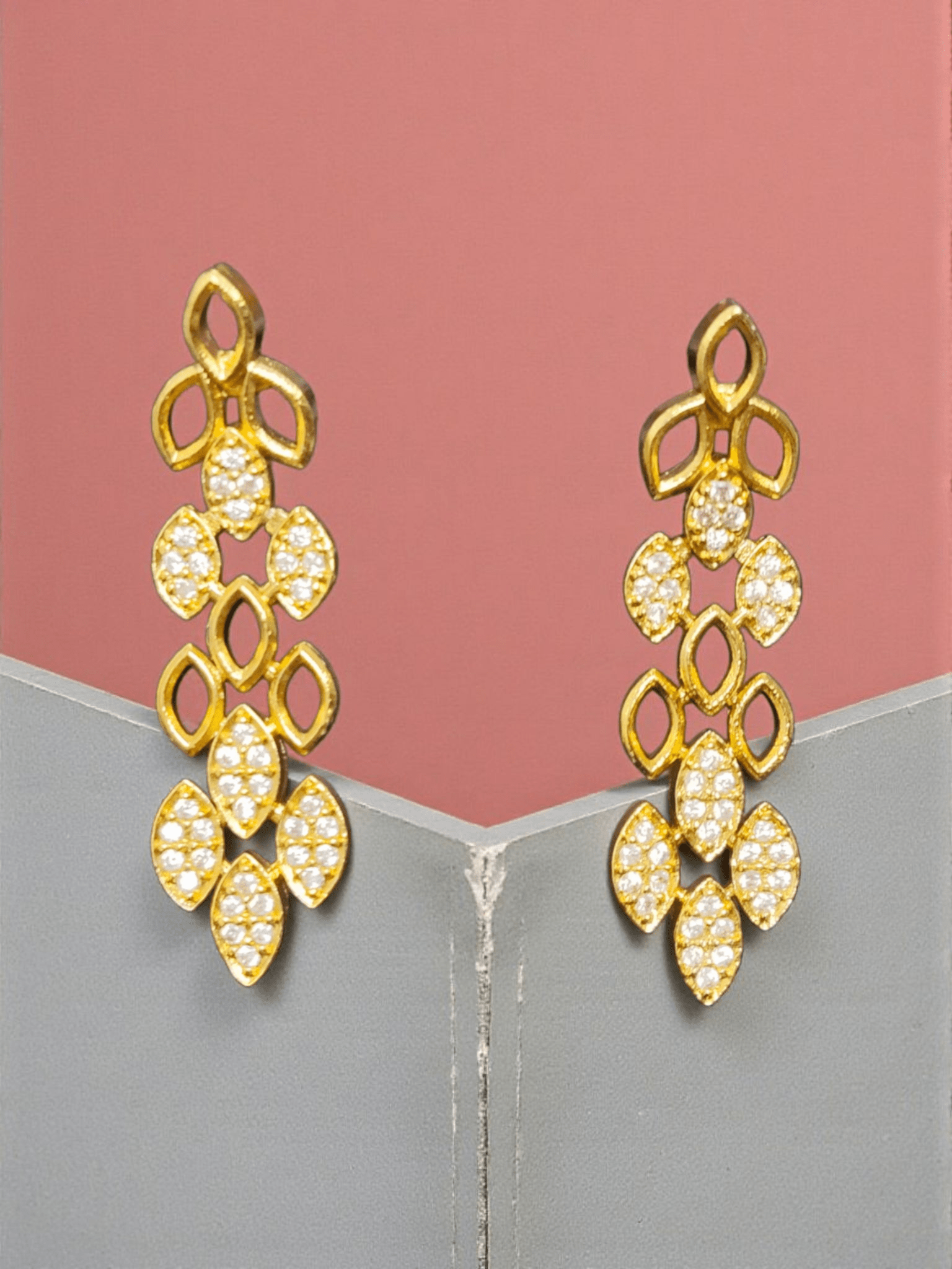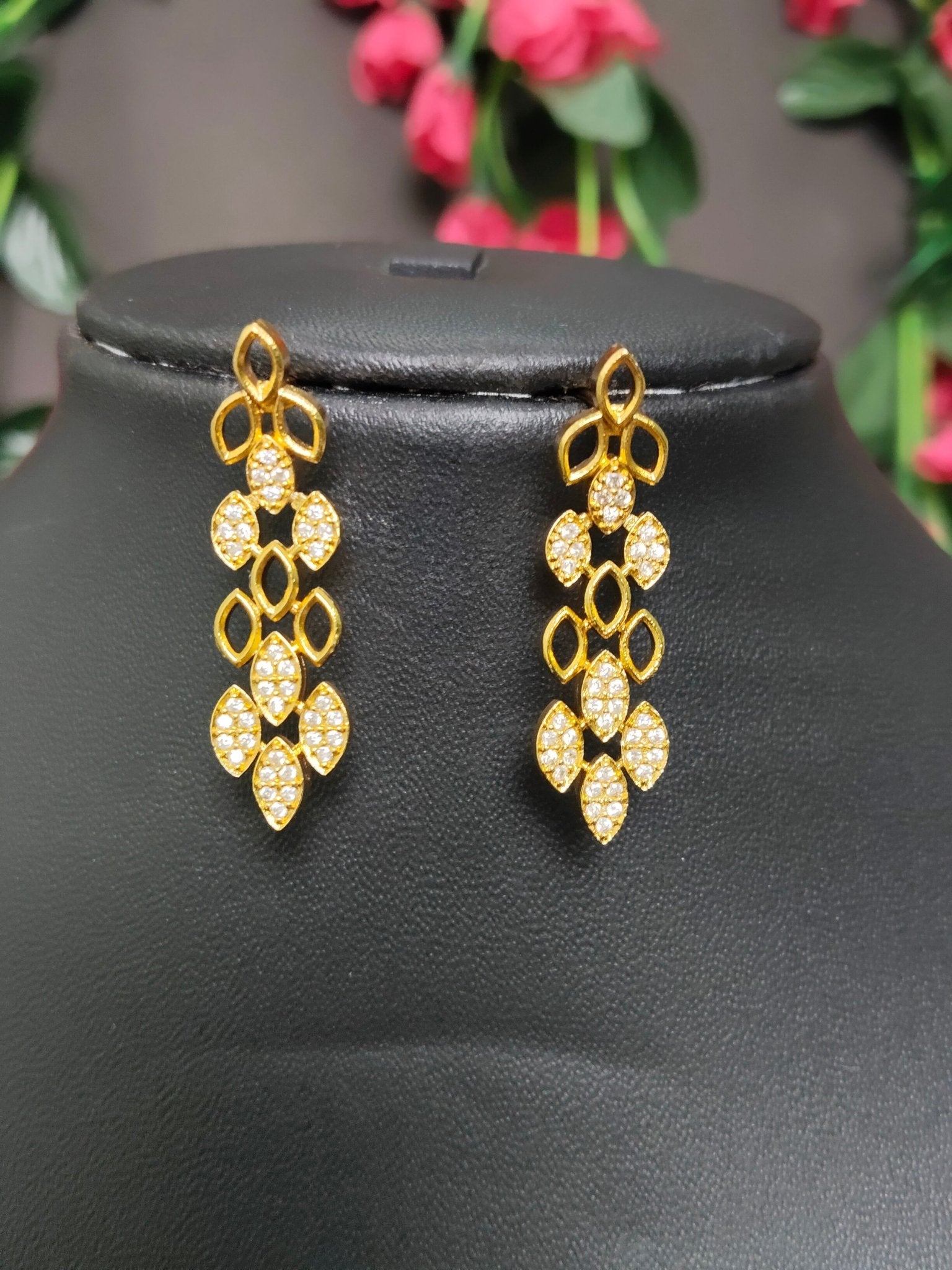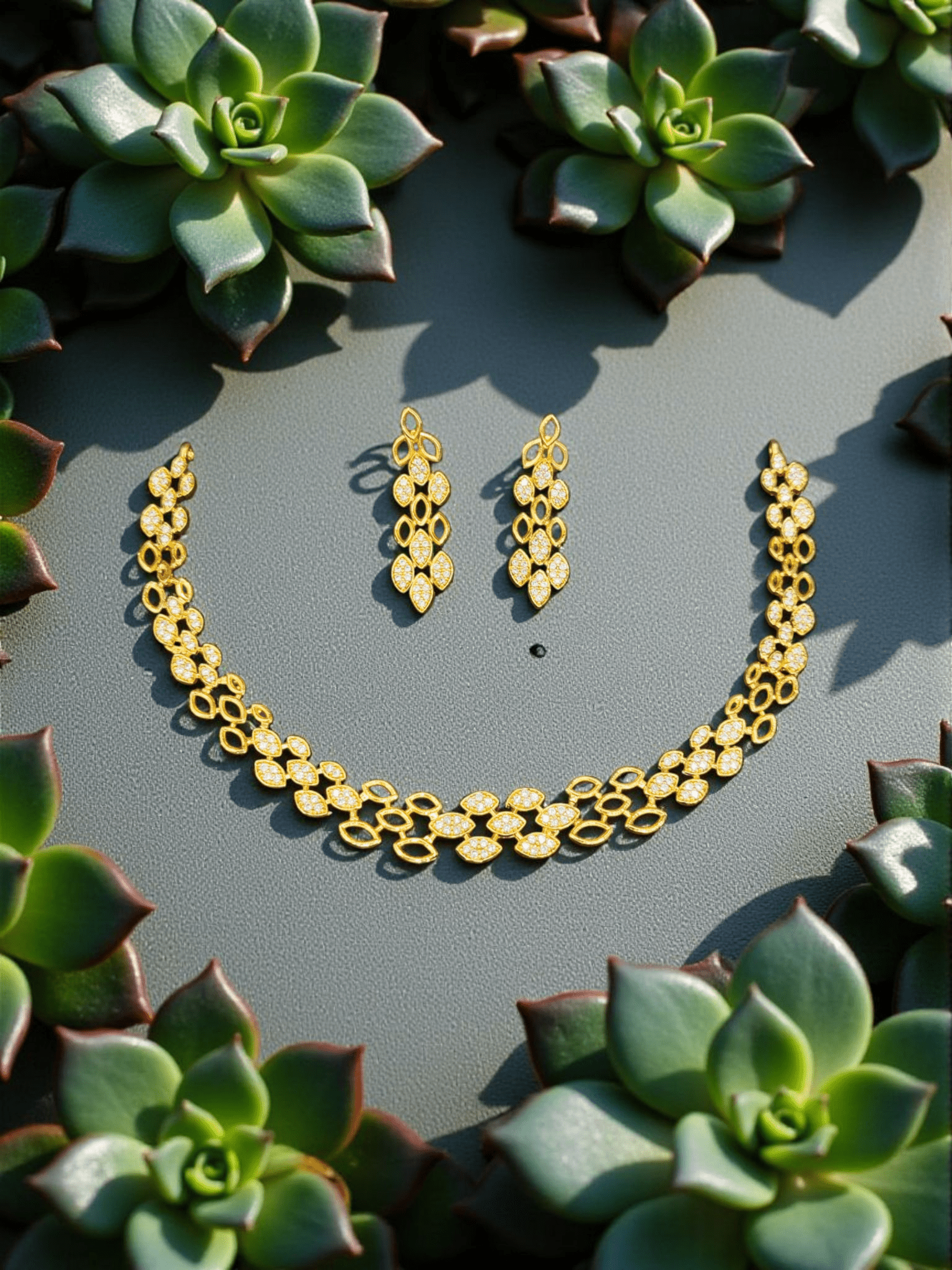 Golden Leaves Premium Quality Simple and Stylish 22k Gold Plated Necklace Set with AD Stone