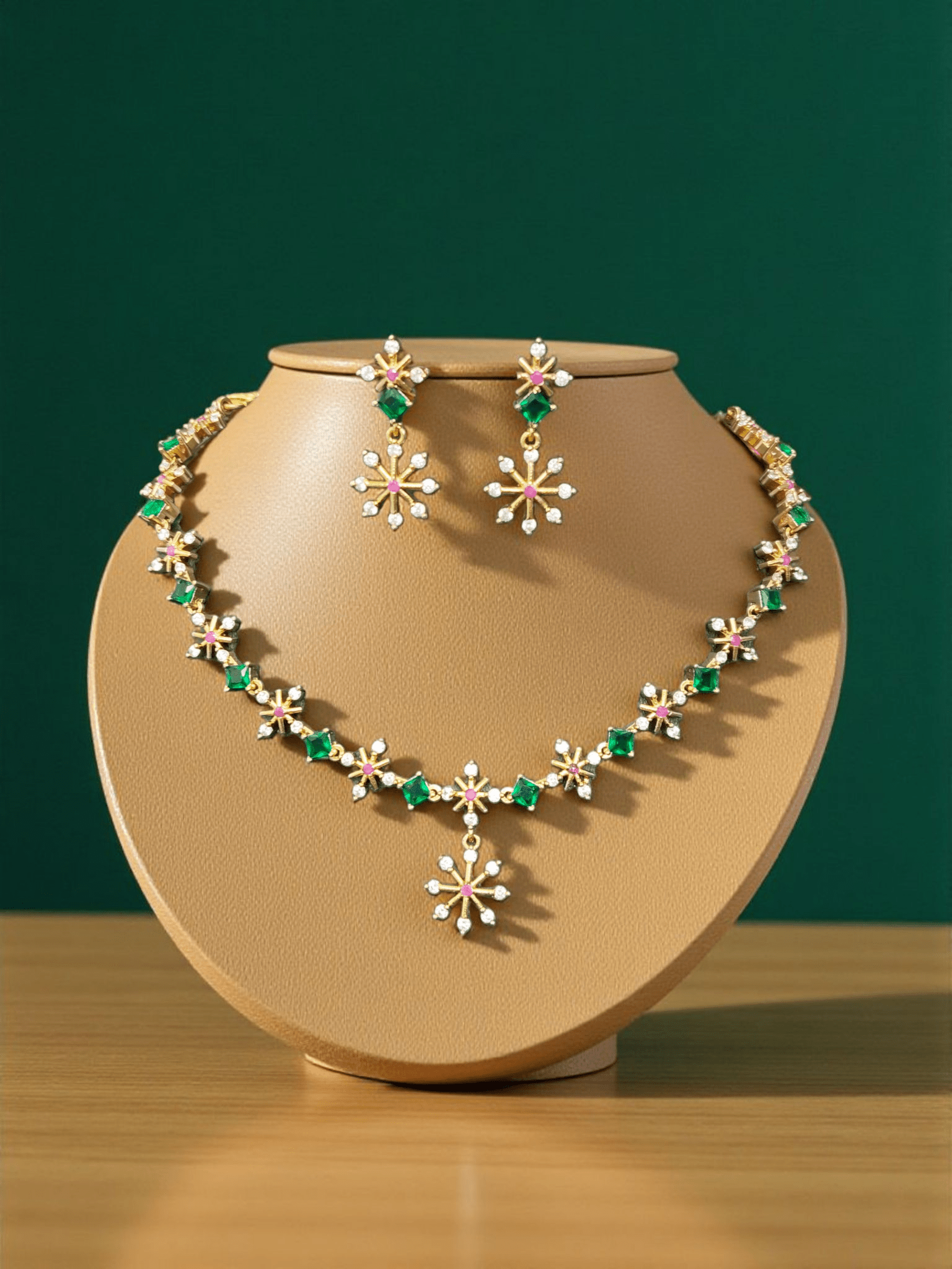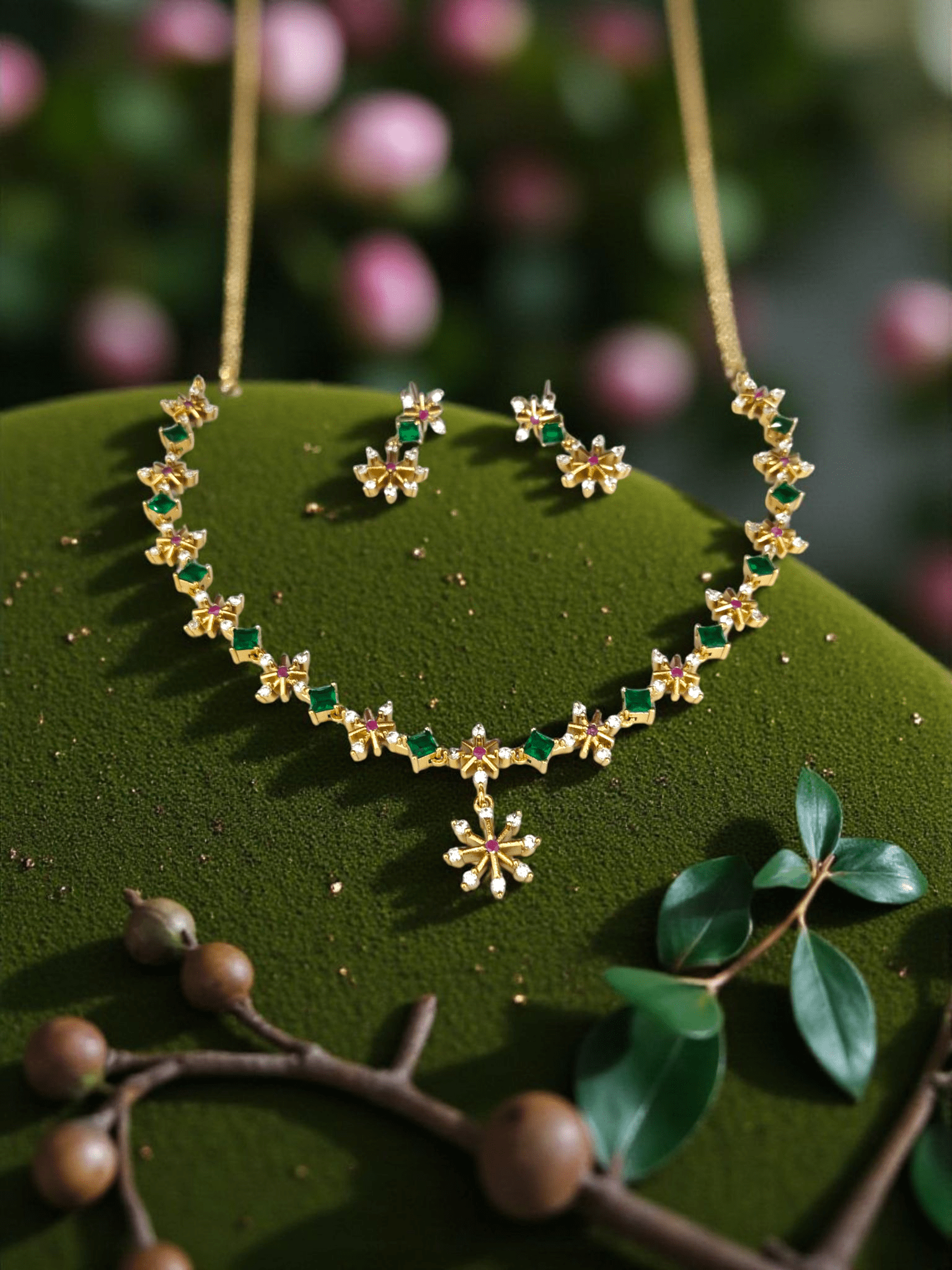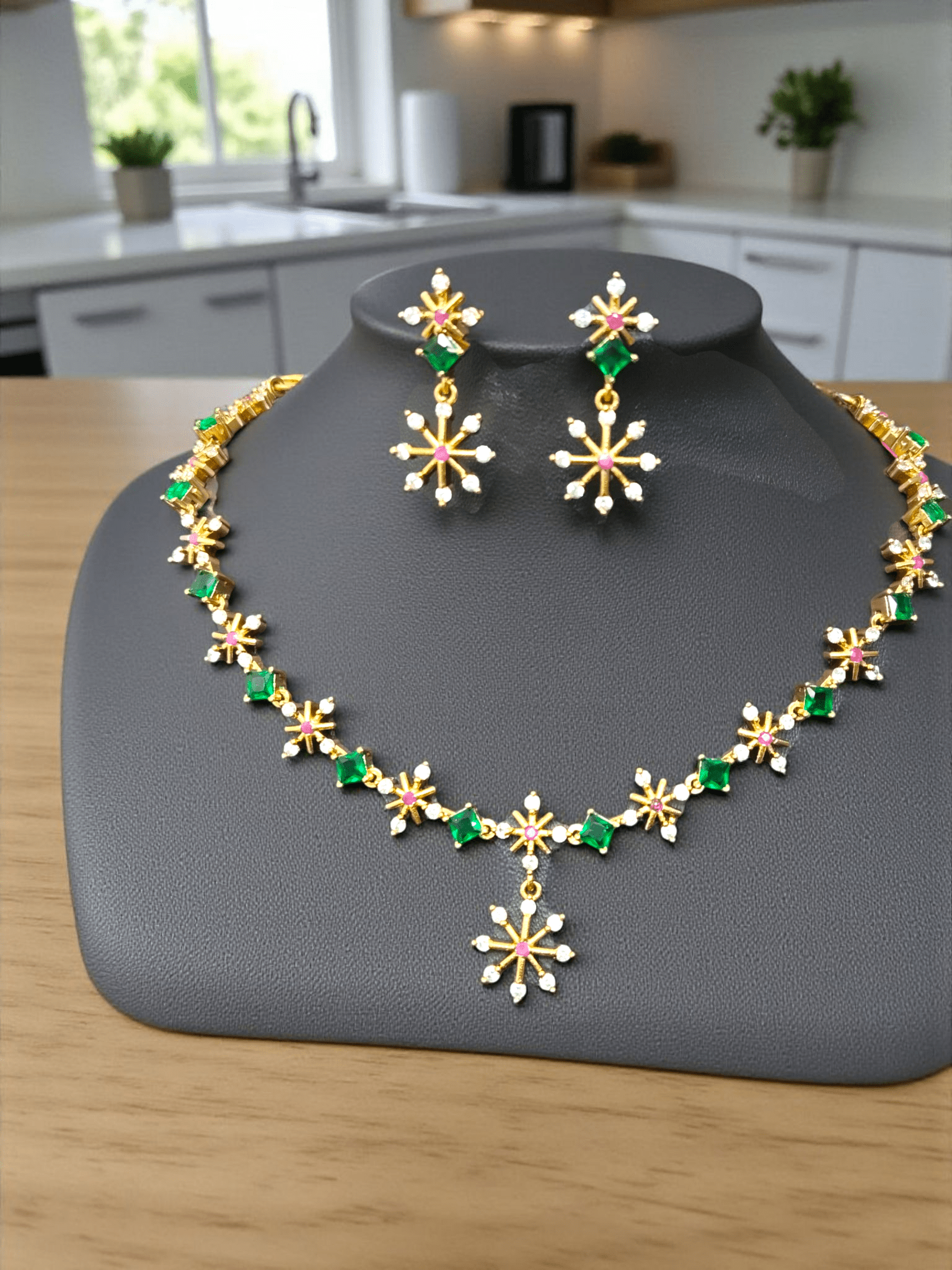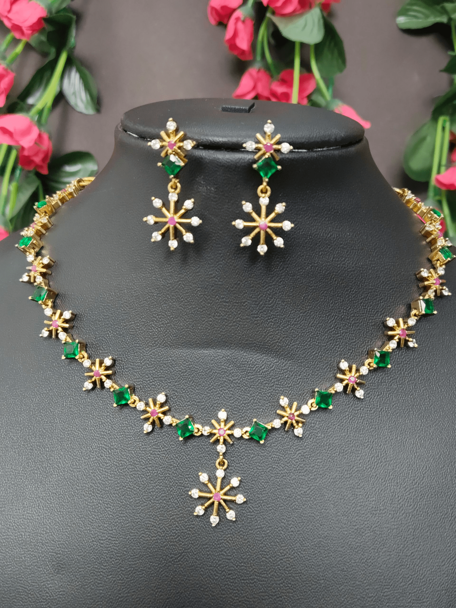 Green Leafy Vine Premium Quality Simple and Stylish 22k Gold Plated Necklace Set with AD Stone
