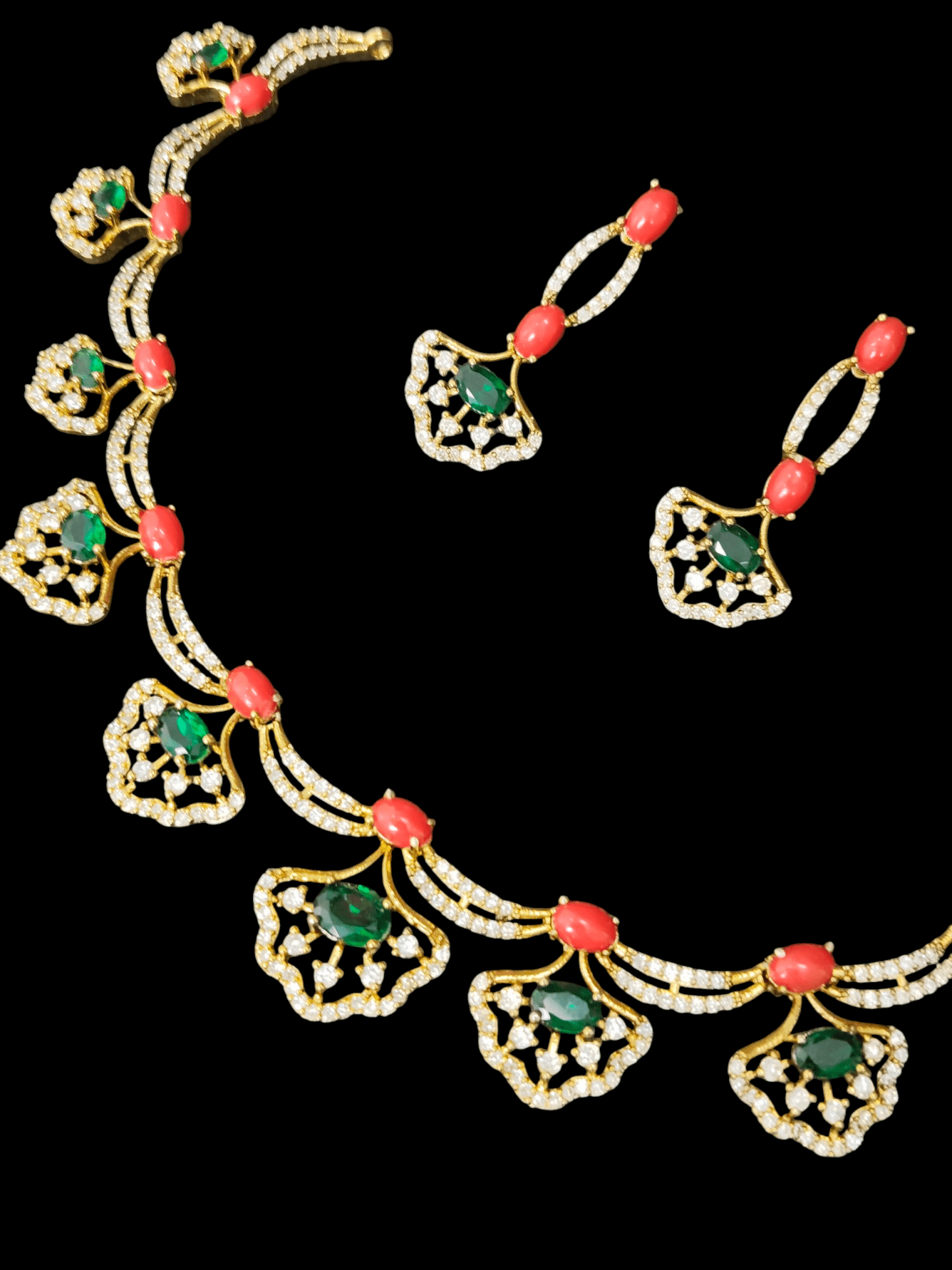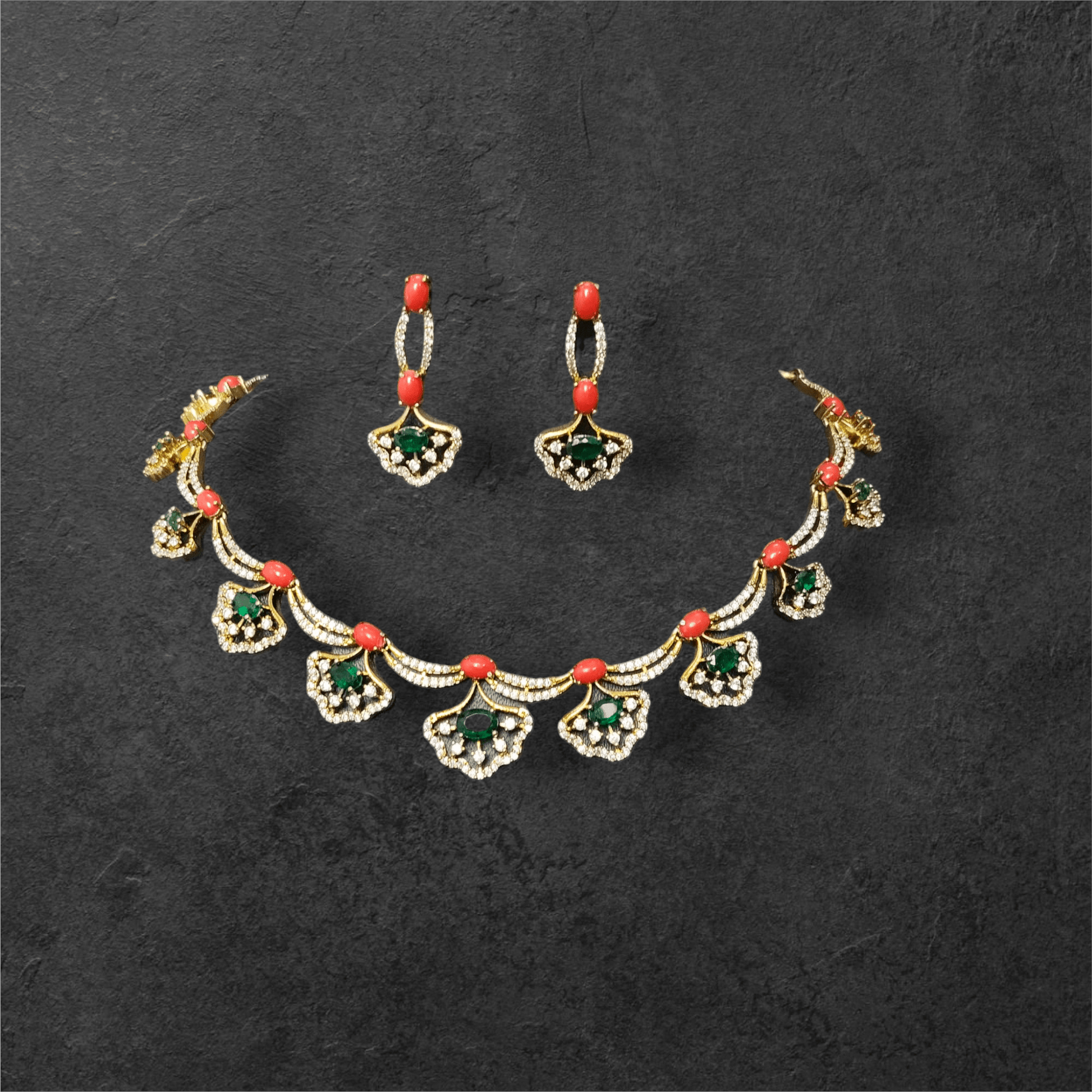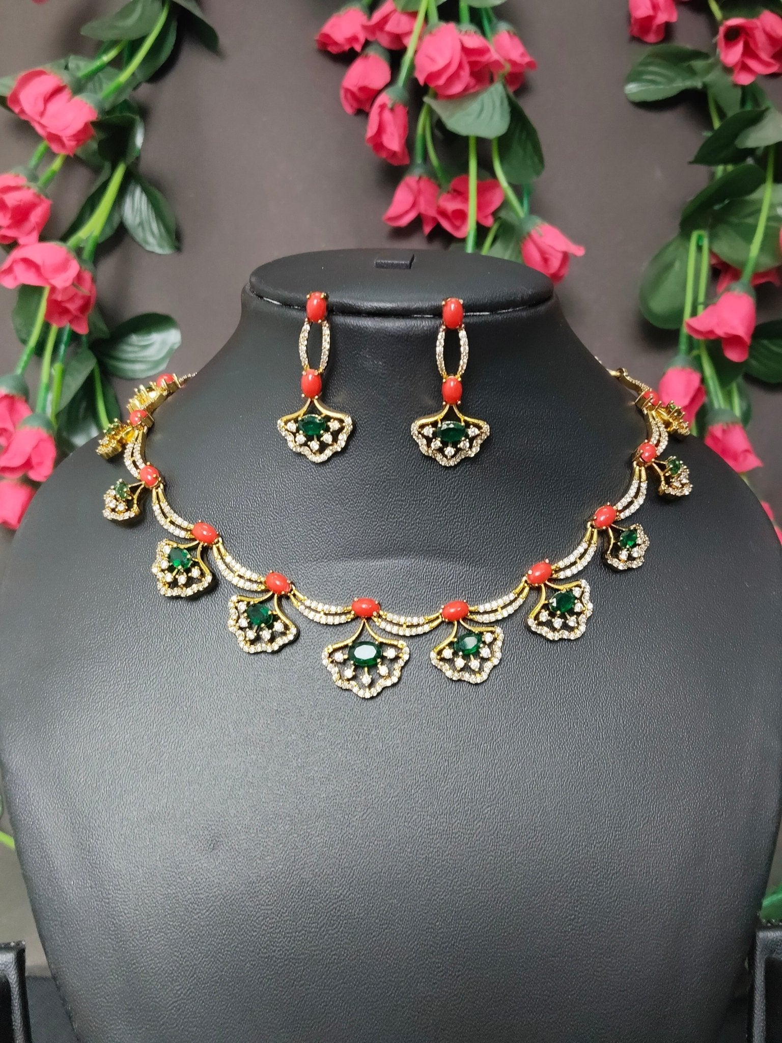 Pagadam CZ Premium Quality Coral Beaded Stylish AD Stoned Necklace Set