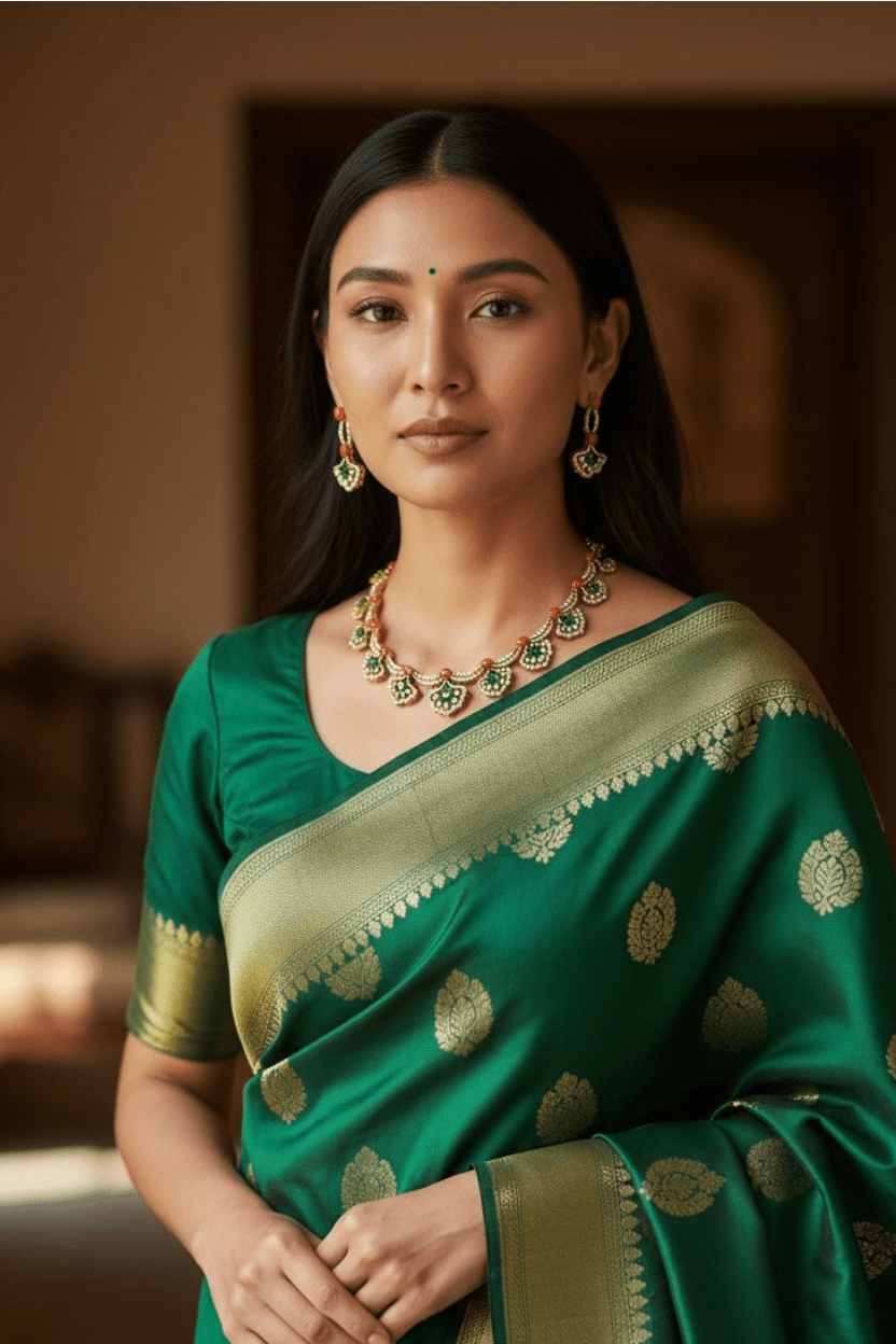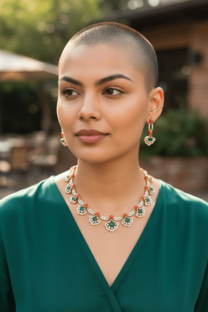 Elevate your jewelry collection with this exquisite Pagadam CZ Stone Necklace Set, featuring brilliantly cut cubic zirconia stones that capture and reflect light with remarkable clarity. The curved diamond design creates an elegant, sophisticated silhouette that complements both traditional and contemporary styles. Crafted with precision, these lab-created stones offer the sparkle and brilliance of fine diamonds at an accessible price point. Perfect for special occasions or everyday elegance, this necklace set combines timeless design with modern craftsmanship. The durable construction ensures lasting beauty and wearability for years to come.