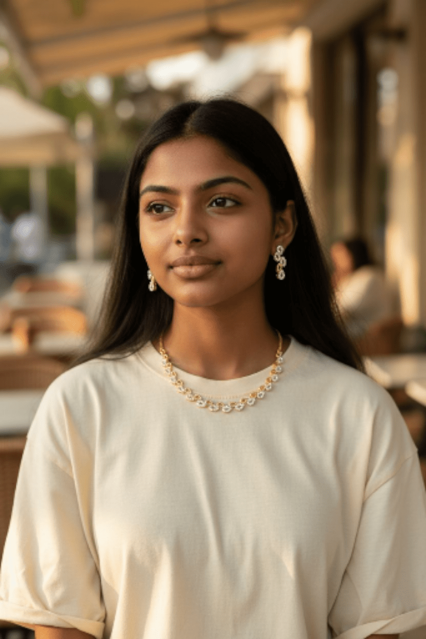 Pearlée Cascade is a contemporary necklace that embodies timeless elegance through its inspired design of cascading teardrop motifs. Each shimmering element, finished in luxurious gold, evokes the delicate beauty of pearls and diamonds in graceful descent. This sophisticated piece seamlessly transitions from festive celebrations to refined everyday moments, offering versatile sparkle with understated charm. Perfect for those who appreciate modern aesthetics paired with classic allure. ✨💛