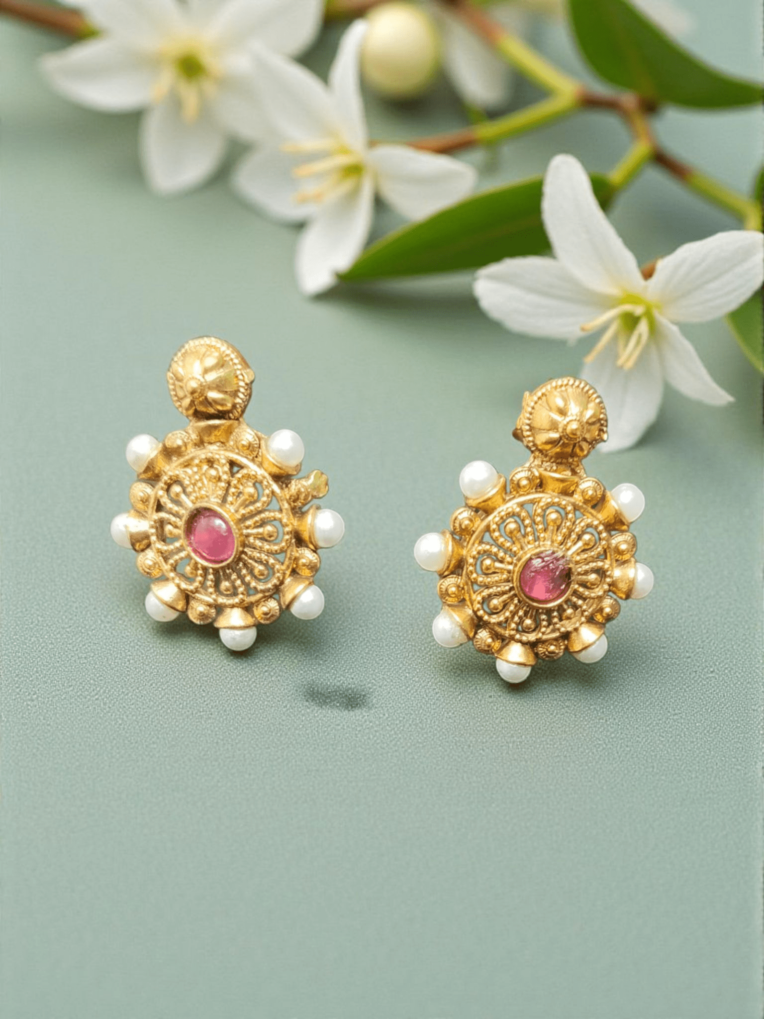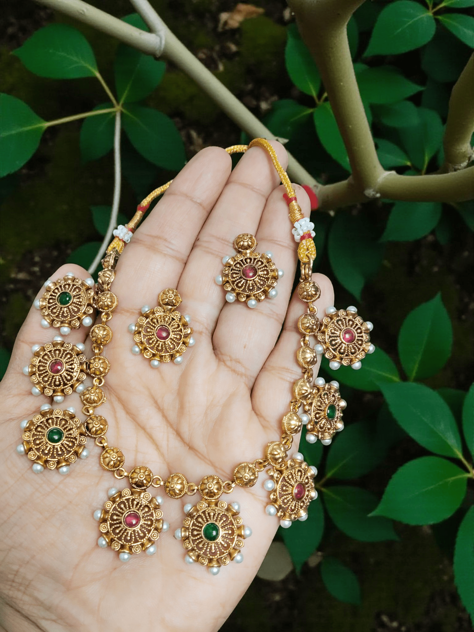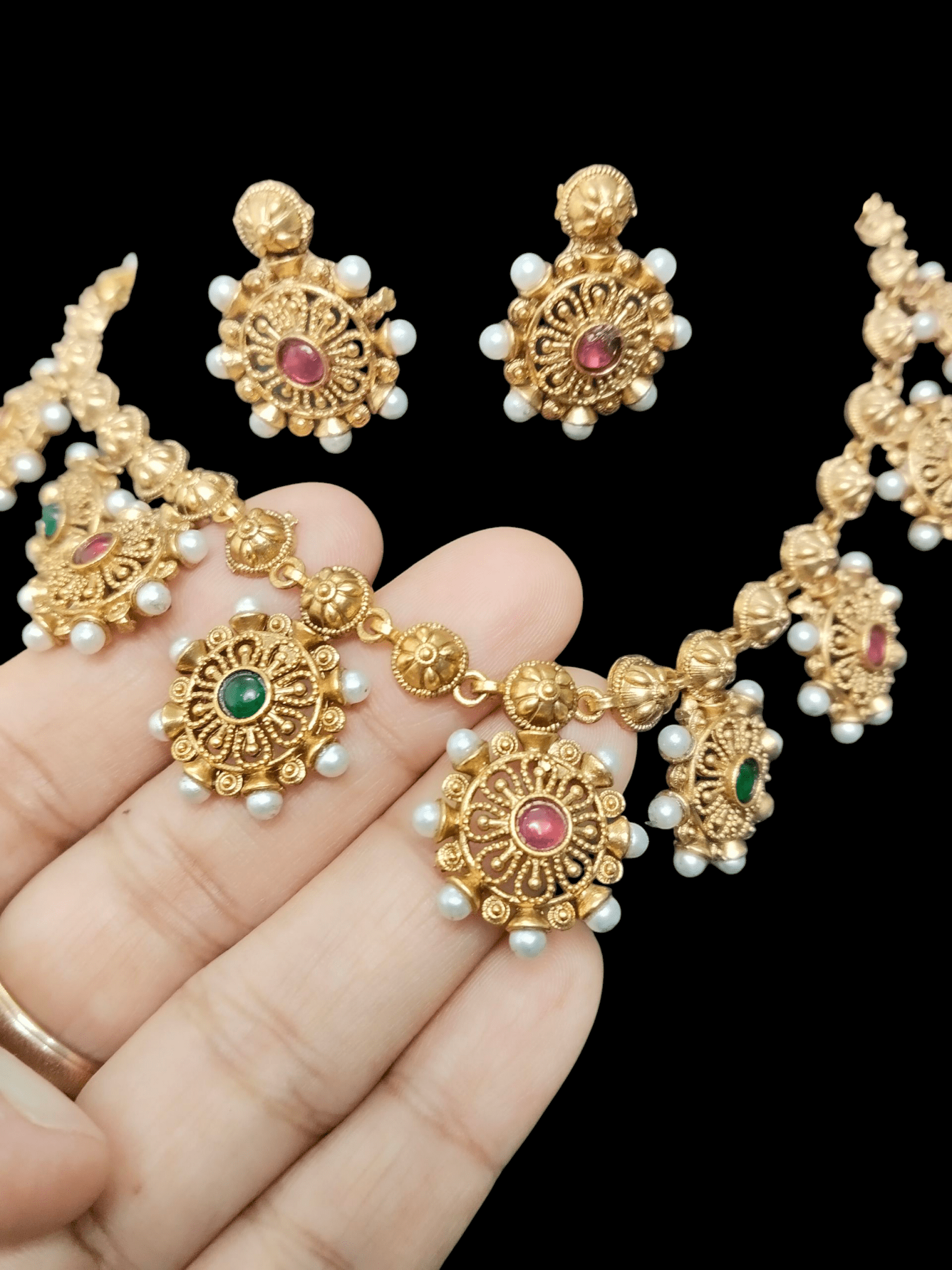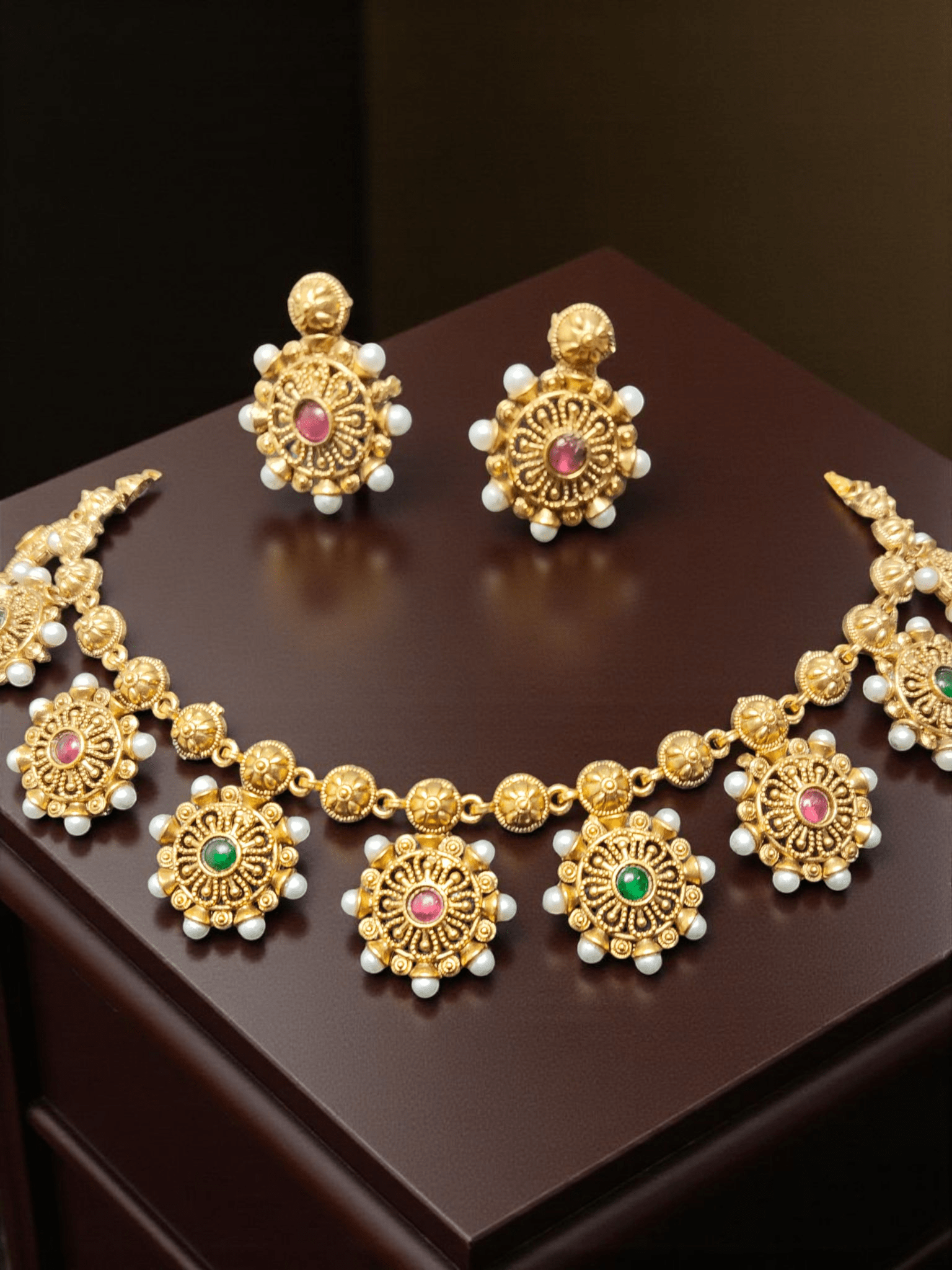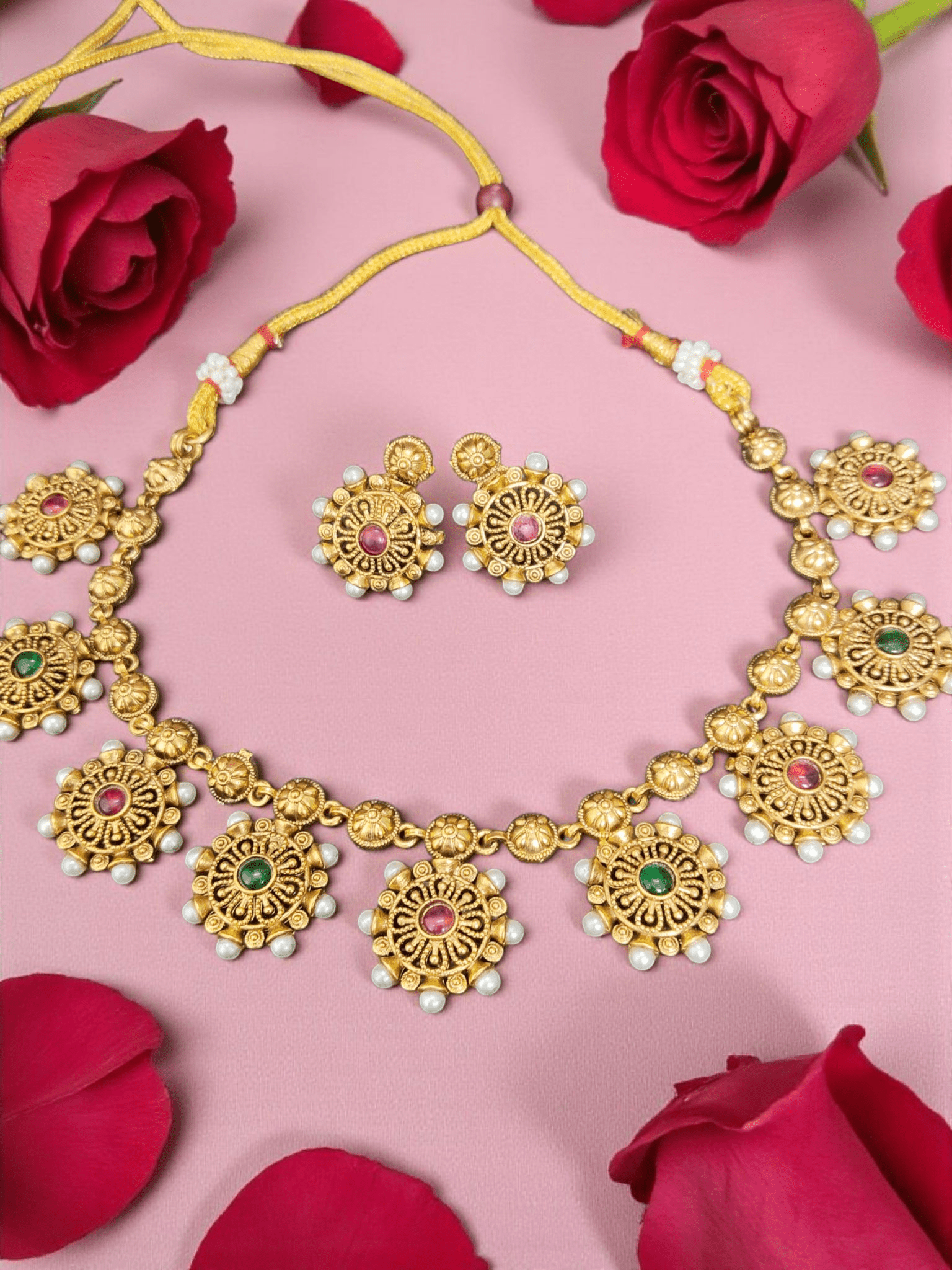 Enchanted Beautiful And Elegant Treading Traditional Pearl Floral Necklace Set